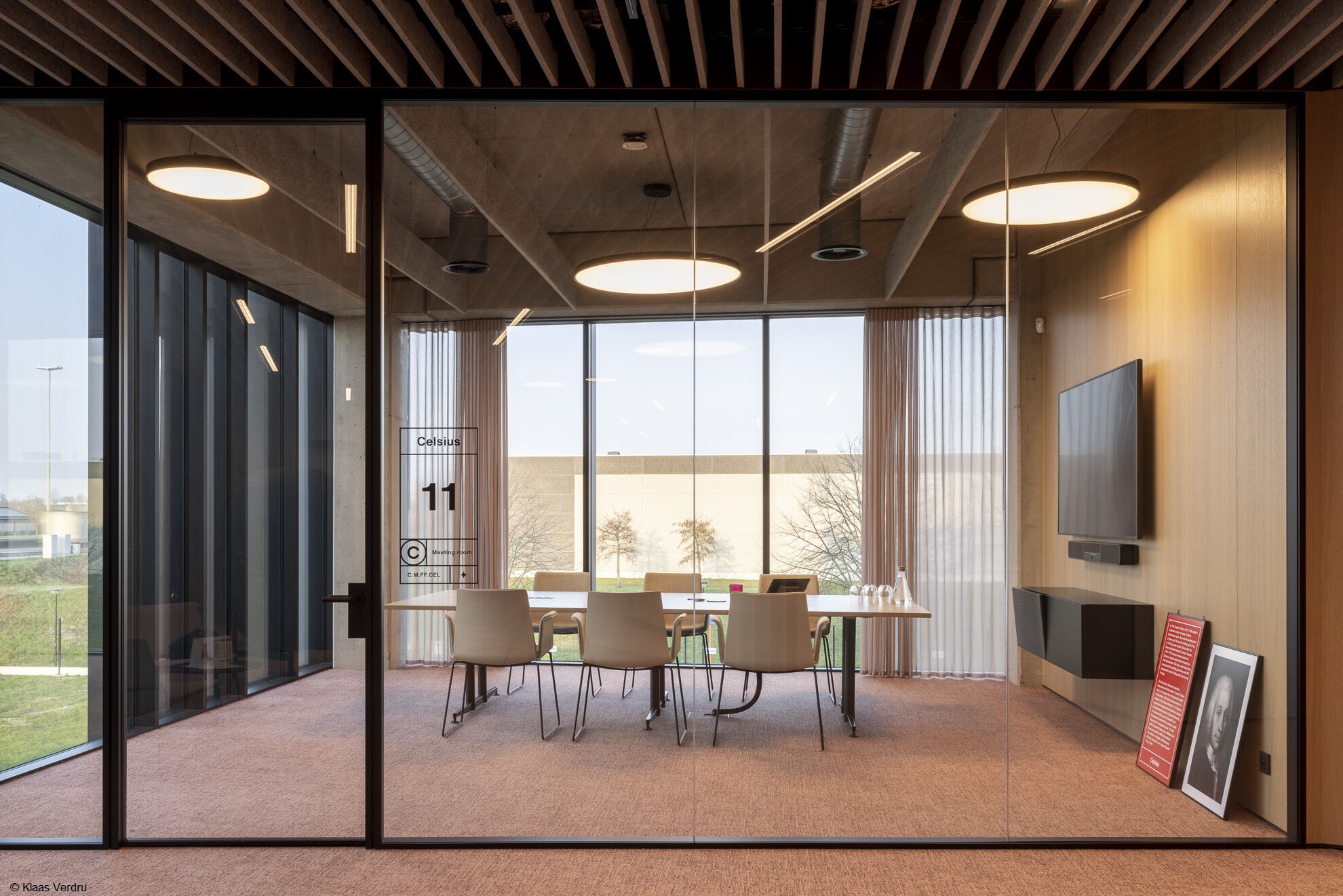 Ook op het vlak van technieken mikt Callens hoog. Zo is het nieuwe gebouw voorzien van vraaggestuurde ventilatie, betonkernactivering en een warmtepomp. Ook wordt bijkomend geïnvesteerd in PV-panelen voor opwekking van groene stroom.